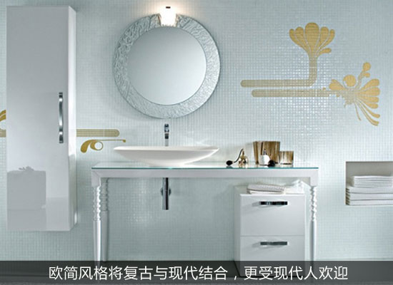 典型的古典欧式风格,喜爱以富丽的装修、浓郁的家具颜色、以及精巧的造型,将室内提高到雍容华贵的打扮润饰的作用。而关于卫浴间来说,要害的复古风格,仍然在澡堂家具的风格规划上,能给人以杰出的复古品尝的展示。